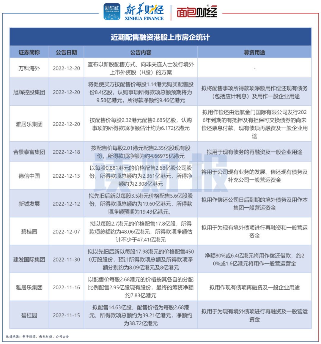 碧桂园、新城发展等多家港股上市房企启动配售融资
