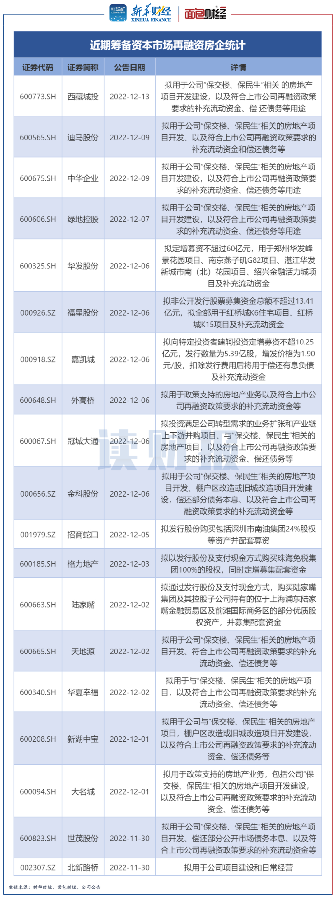 数据显示,多重政策利好下,包括碧桂园、新城发展在内,多家港股房企陆续宣布配售融资。此外,目前披露股权融资意向或计划的A股房企已近20家,其中八成拟通过定增再融资。