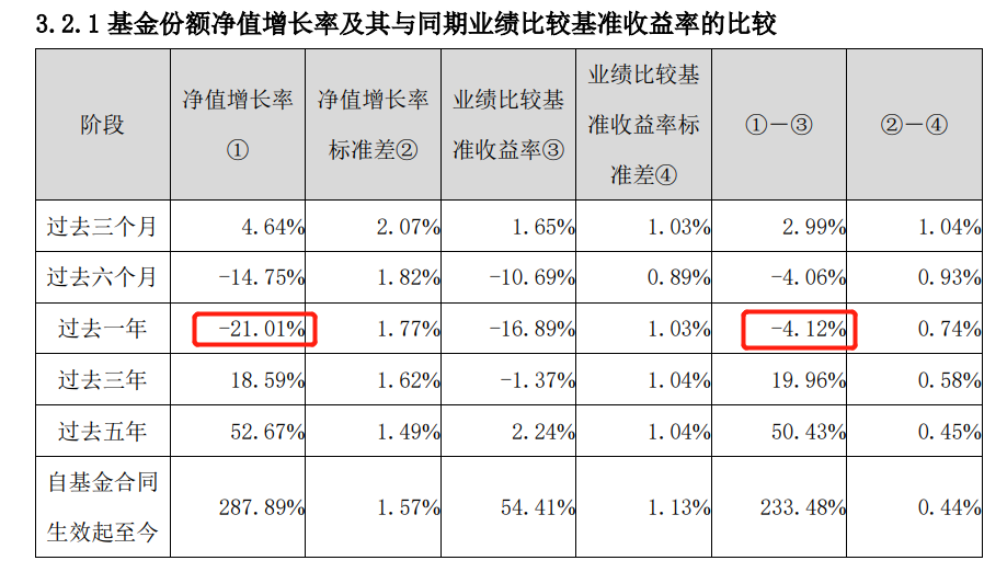 2022年,该基金单位净值收益率-21.01%,跑输业绩比较基准4.12个百分点,同类排名1276/2660。