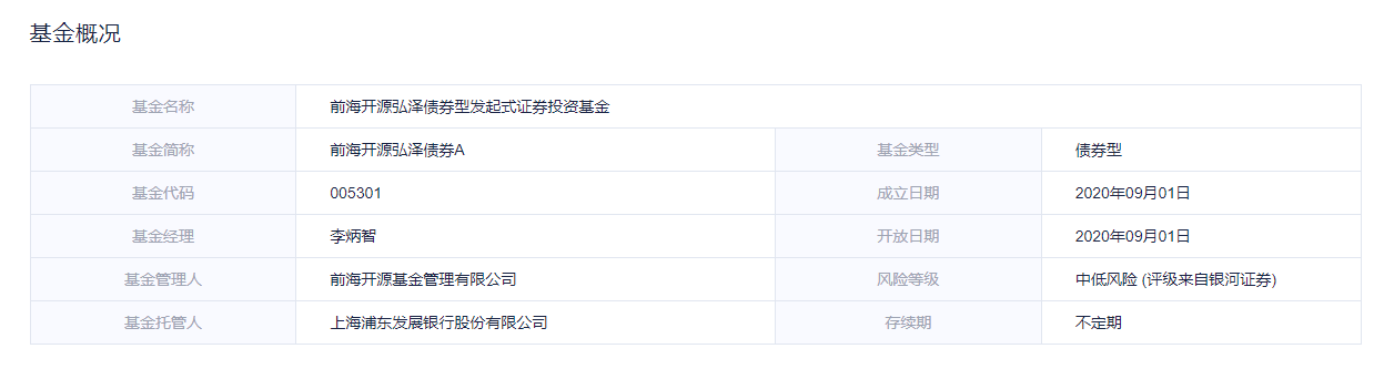 前海开源弘泽债券是一只债券型基金,于2020年9月1日从前海开源景鑫灵活配置混合型证券投资基金转型而来。