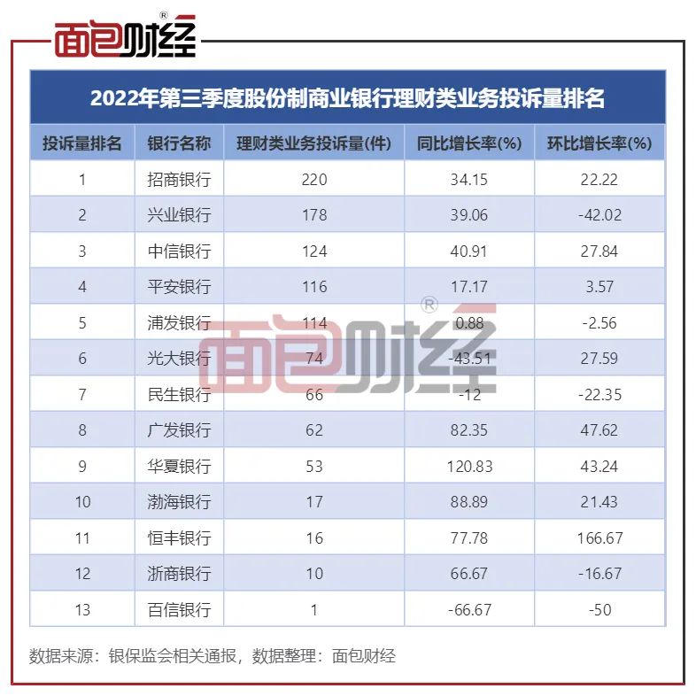 招商银行:理财业务被投诉量居首,同比增逾三成