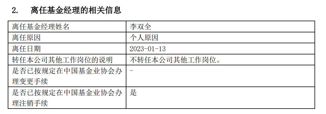 2023年1月10日,华商龙头优势混合增聘伍文友为基金经理,与李双全共同管理该产品。然而,几天之后,该基金再次公告称李双全因个人原因卸任基金经理职务。