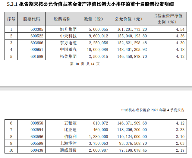 该基金四季度末重仓股包括旭升集团、中天科技、东方电缆、中国重汽、拓普集团等企业。