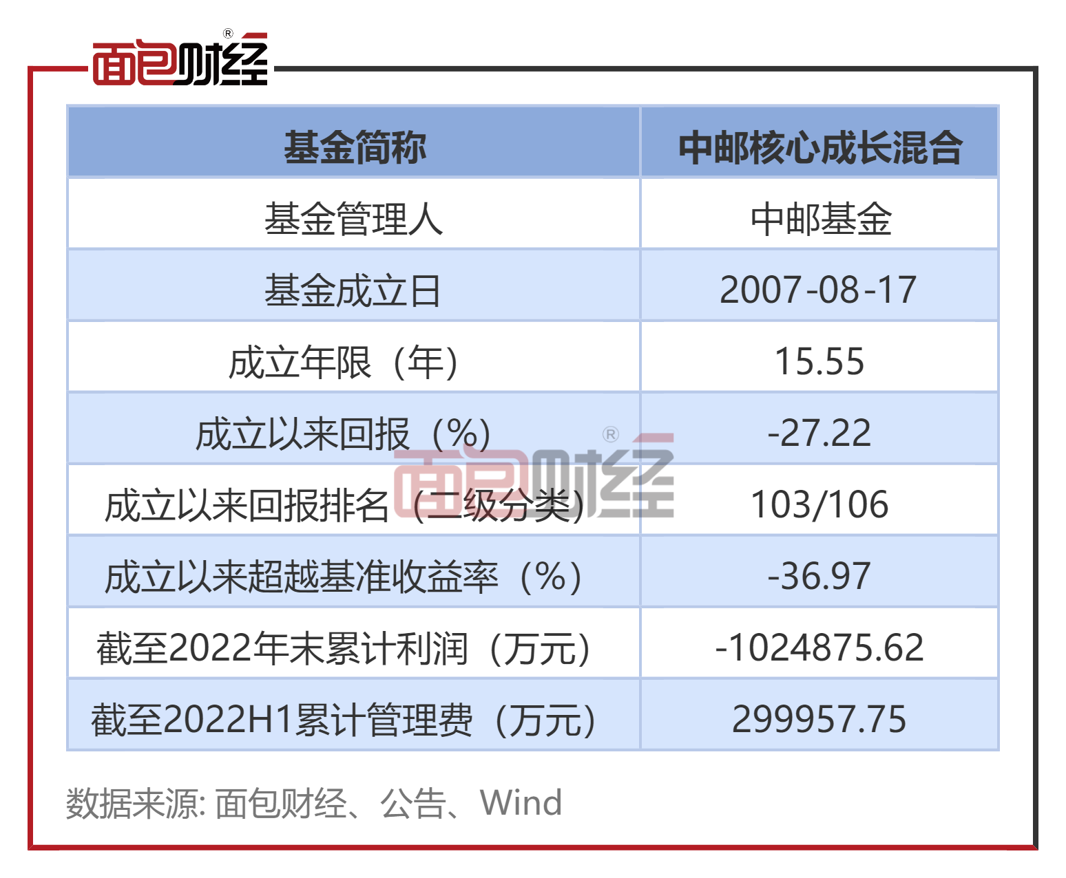中邮核心成长混合成立于2007年8月,管理人为中邮基金。截止2023年2月28日,该产品累计运行约15.55年。