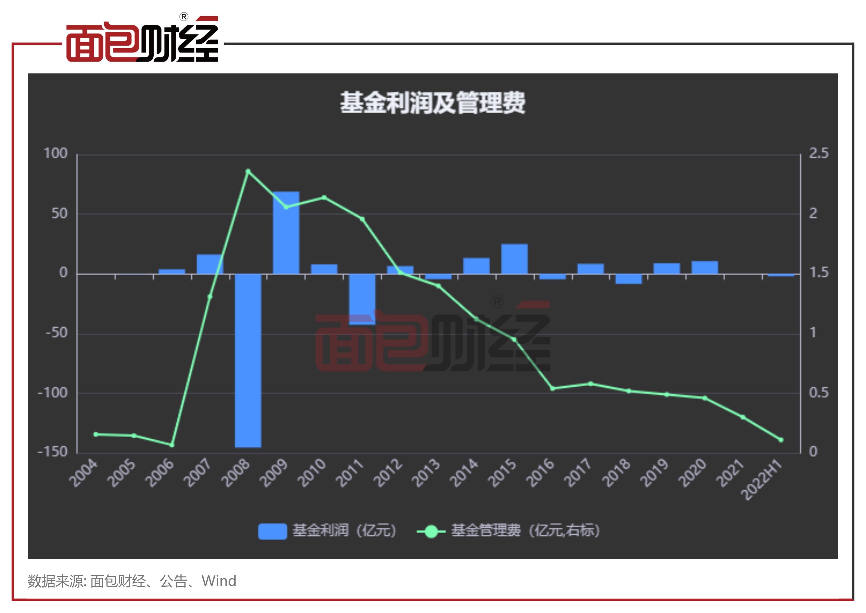 截至2022年末,该基金累计浮亏超40.43亿元,主要发生在2008年和2011年。