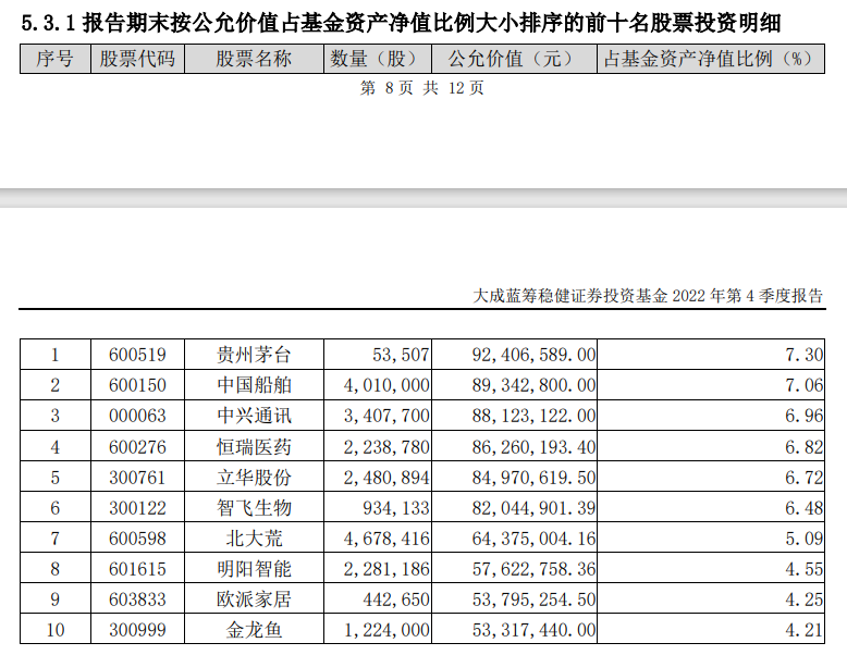 贵州茅台、中国船舶、中兴通讯为前三大重仓股