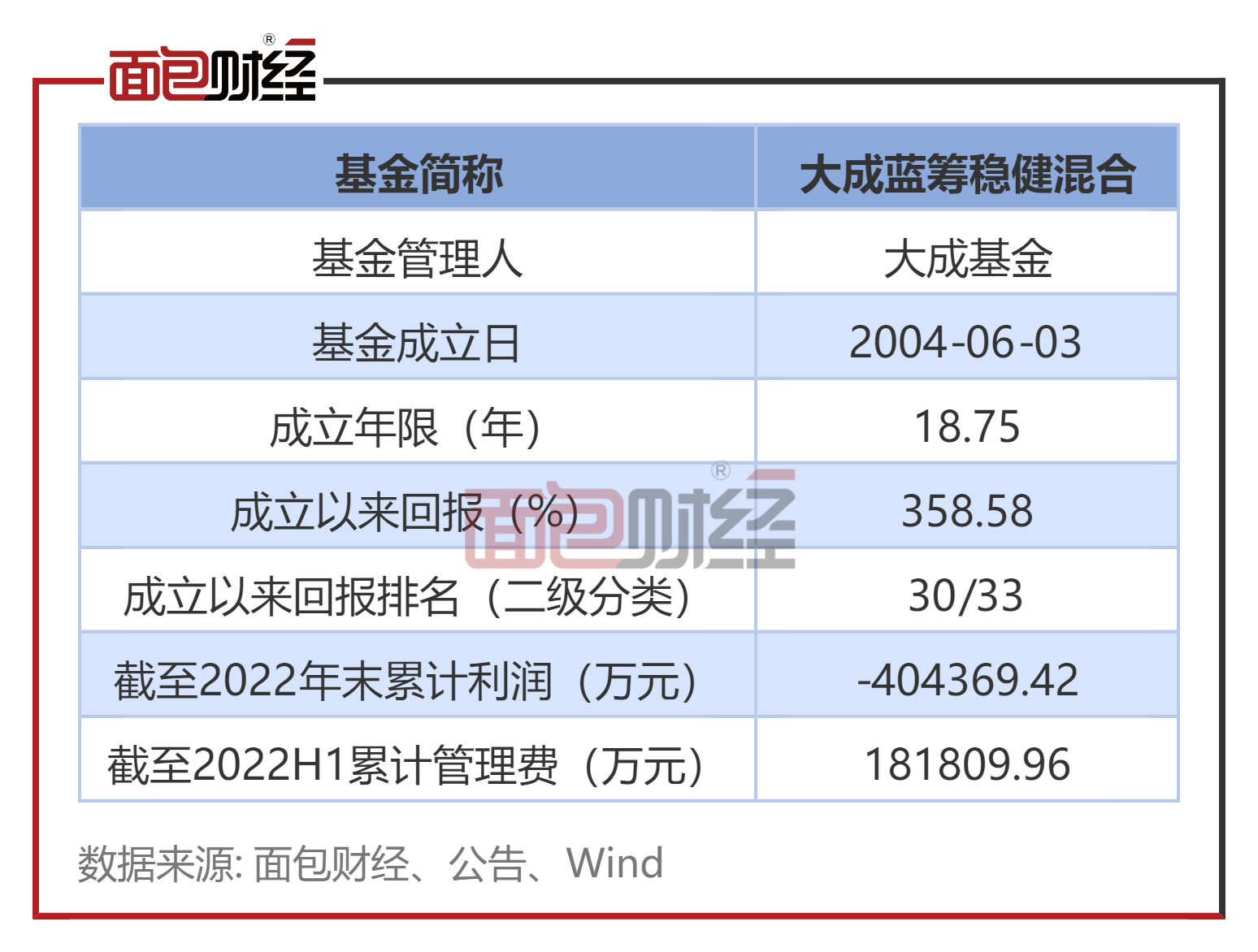 大成蓝筹稳健混合的年管理费率为1.5%。截至2022年上半年末,大成基金累计从该基金收取管理费约18.18亿元。考虑到2022年下半年的管理费,截至2022年末,大成基金预计累计收取管理费已超过18.18亿元。