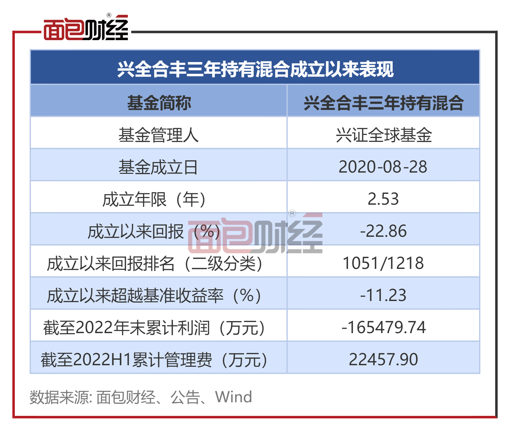 兴全合丰三年持有混合成立于2020年8月,管理人为兴证全球基金。截止2023年3月8日,该产品累计运行约2.53年。