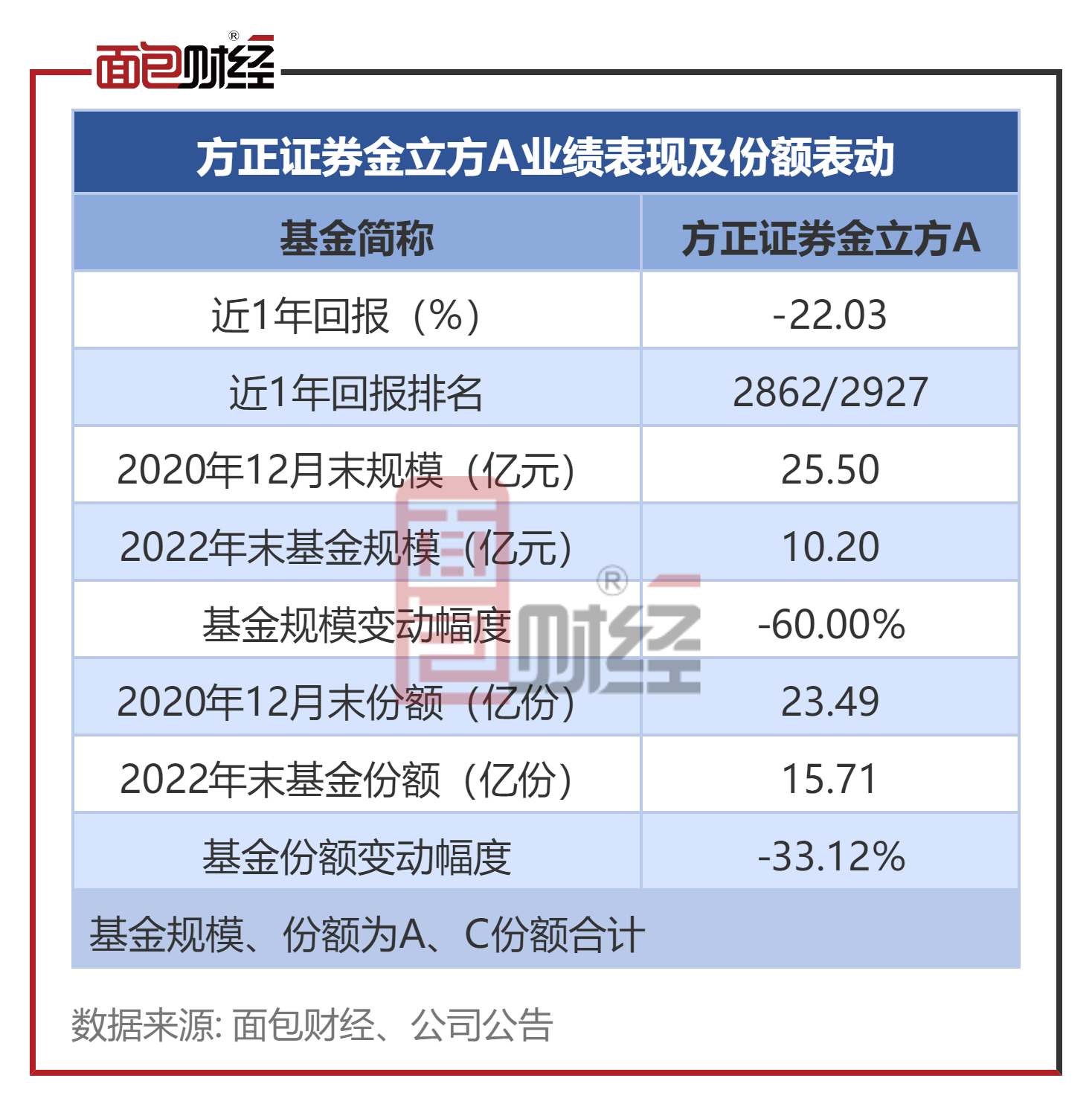 方正证券金立方2020年12月末的规模约25.5亿元(对应份额约23.49亿份)。2022年四季度末,该基金的基金资产净值约为10.2亿元、基金份额总额约为15.71亿份,分别下降约60%、33.12%。
