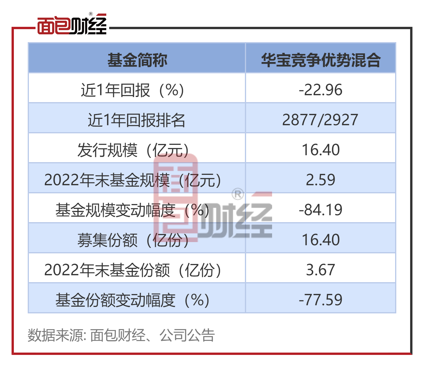 华宝竞争优势混合的发行规模约16.40亿元(对应募集份额约16.40亿份)。2022年四季度末,该基金的基金资产净值约为2.59亿元、基金份额总额约为3.67亿份,分别下降约84.19%、77.59%。