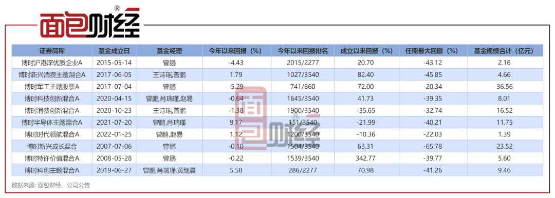 研究显示,博时消费创新混合的基金经理曾鹏单独管理或共同管理共10只产品,2023年初至今超半数产品净值发生回撤,成立时间满一年的产品中3只累计收益仍然为负。