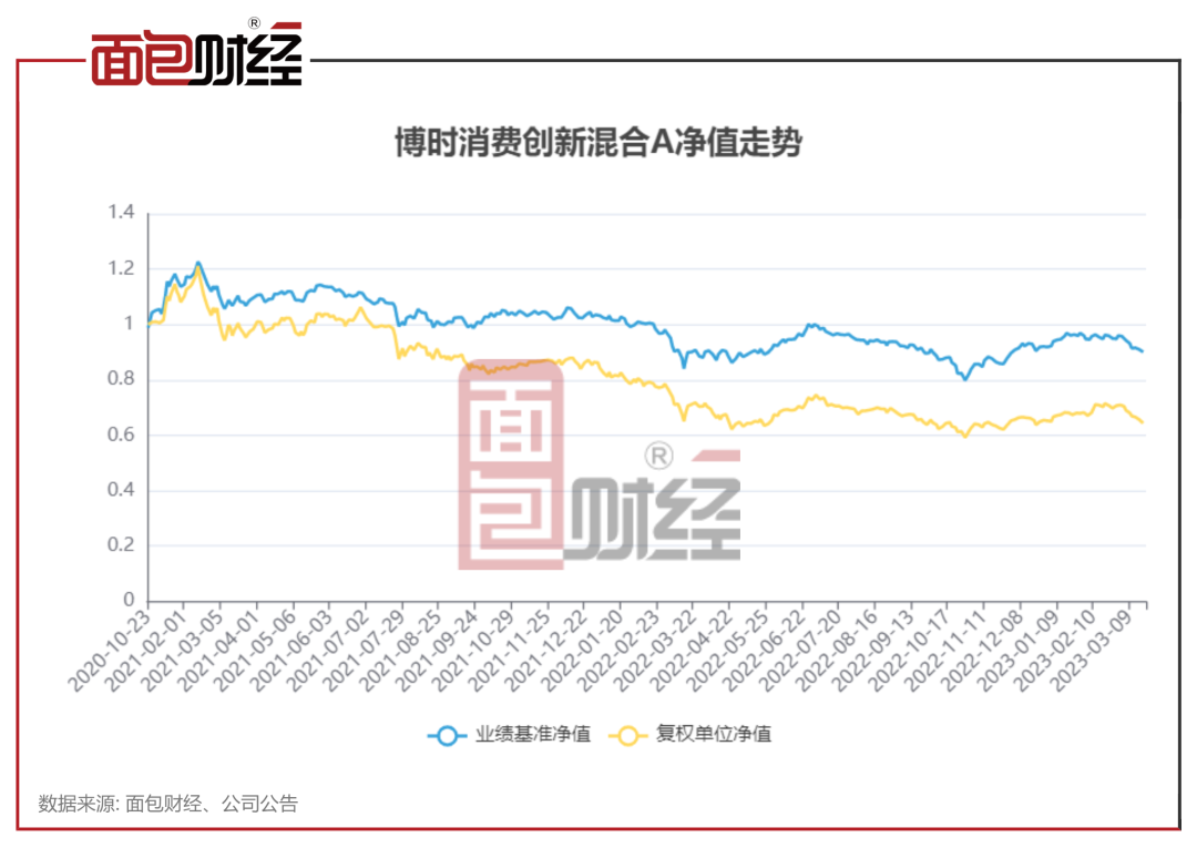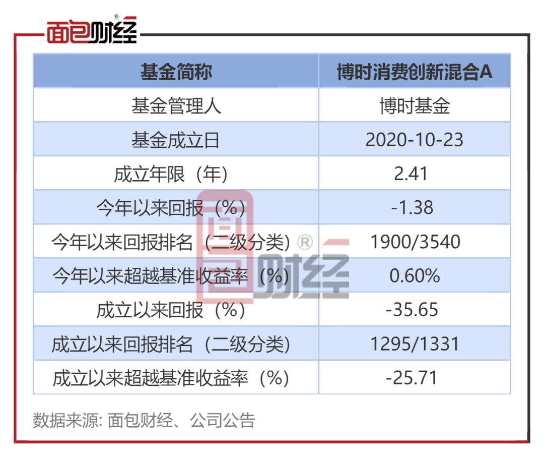 成立至今(截至2023年3月20日,下同),博时消费创新混合A单位净值不足0.65元,跌幅超35%,在同类偏股混合型基金产品中排名1295/1331。