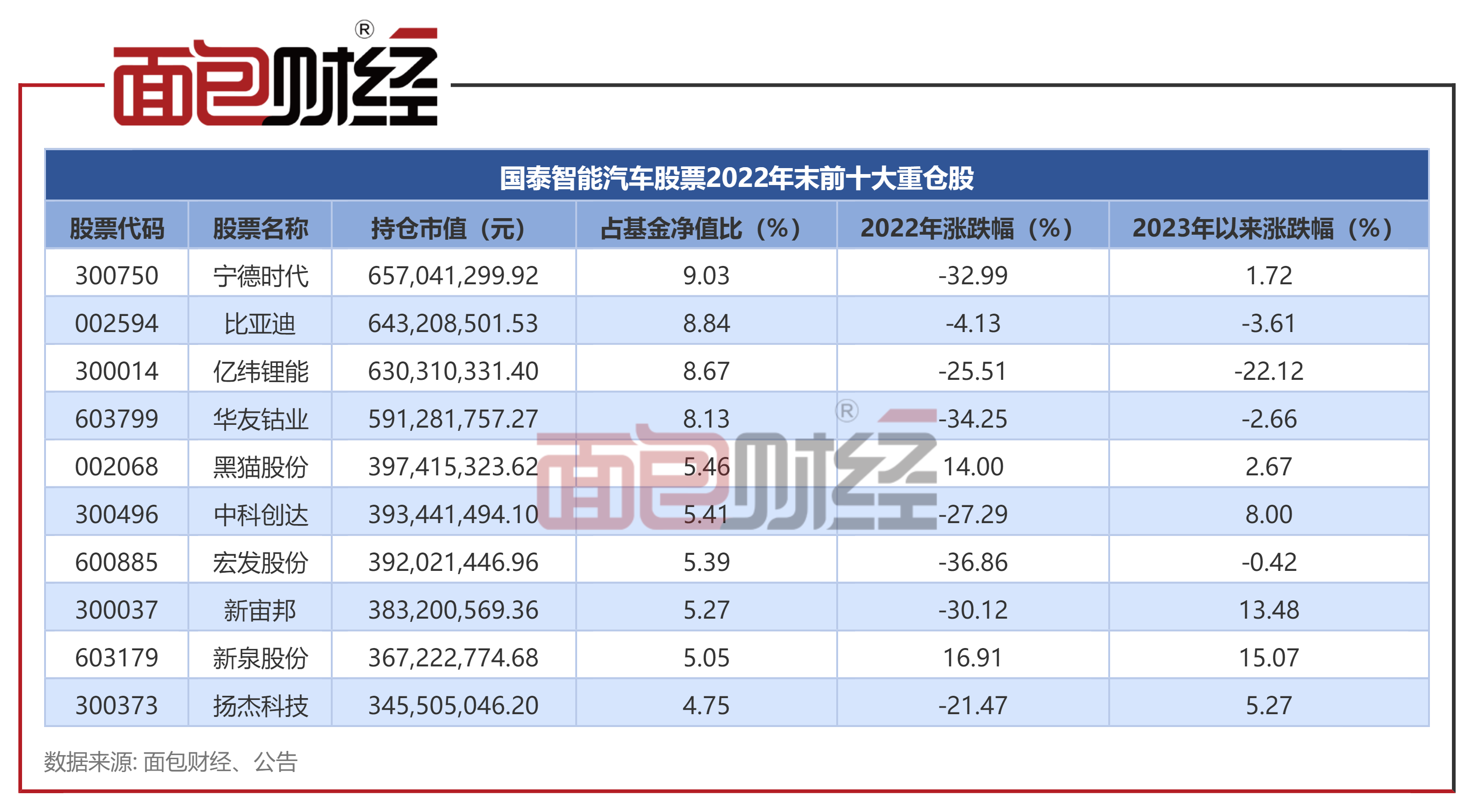 国泰智能汽车股票为普通股票型金,基金2022年末股票持仓占基金总资产的89.75%。前十大重仓股占基金资产净值的比例为66%,高于同类平均的46.24%。