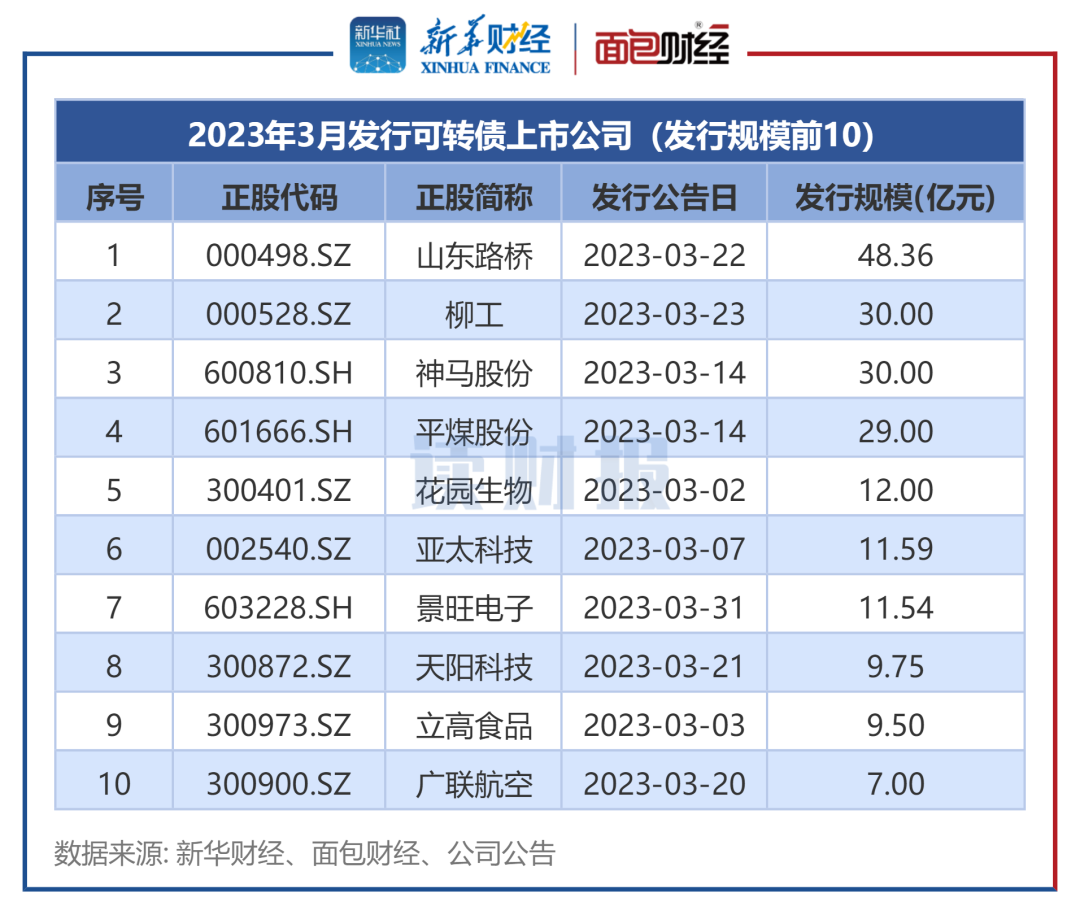 柳工、神马股份3月均发行可转债3000万张,均募资30亿元用于扩产及补充流动资金等。