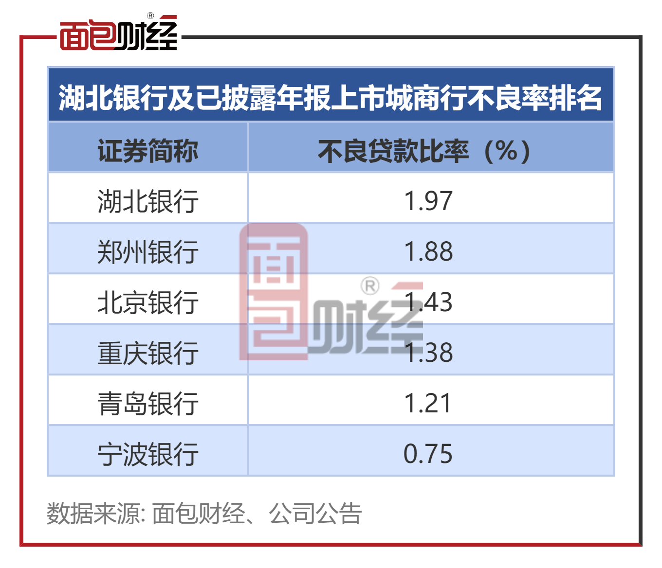 需注意的是,尽管该行不良率呈下降趋势,但与已披露年报上市城商行比,截至2022年末,湖北银行的不良率仍处于首位。