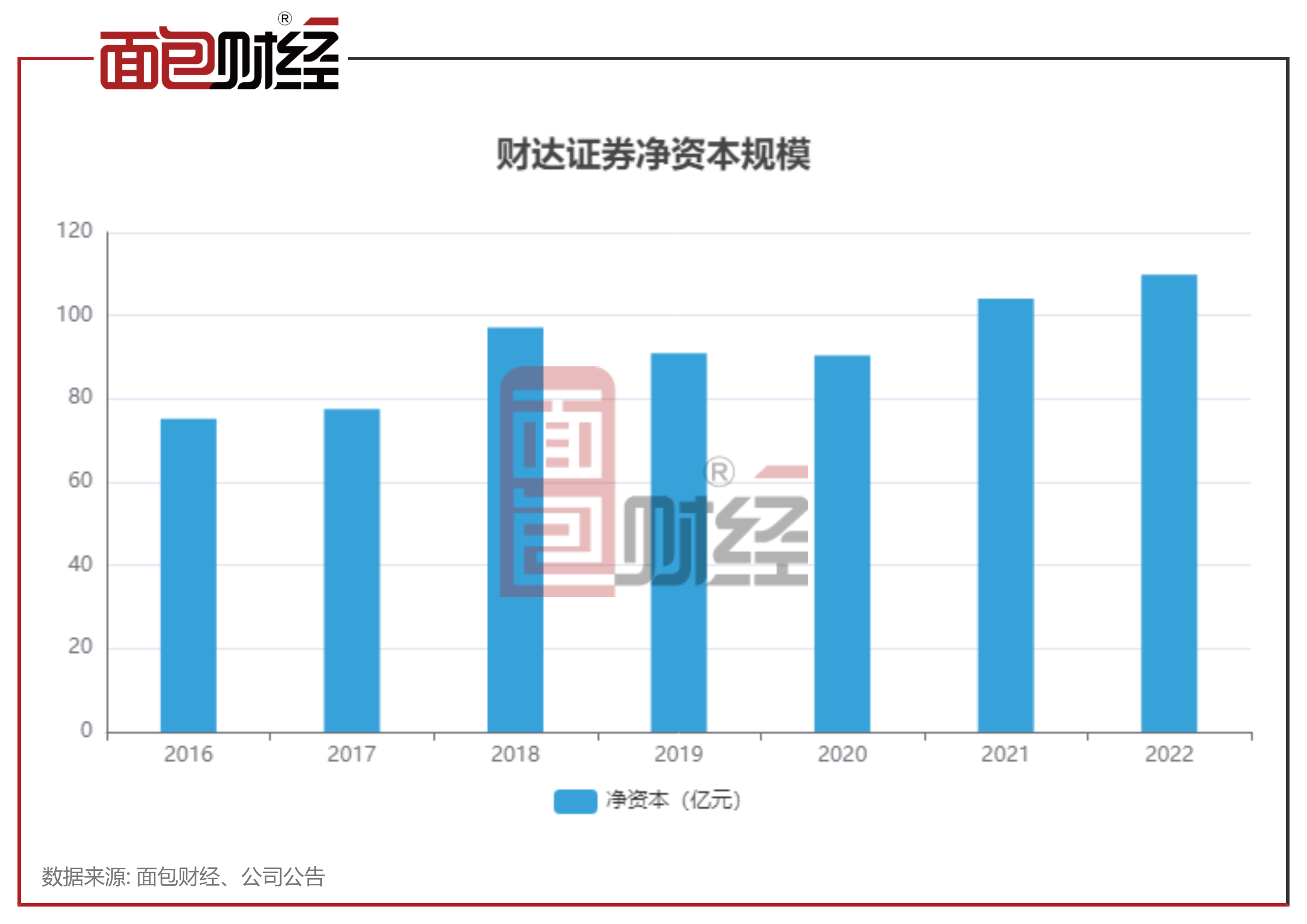 近两年,财达证券的净资本呈增长趋势。截至2022年末,公司净资本规模为109.78亿元,较上年末增加5.68亿元,同比增加5.45%。