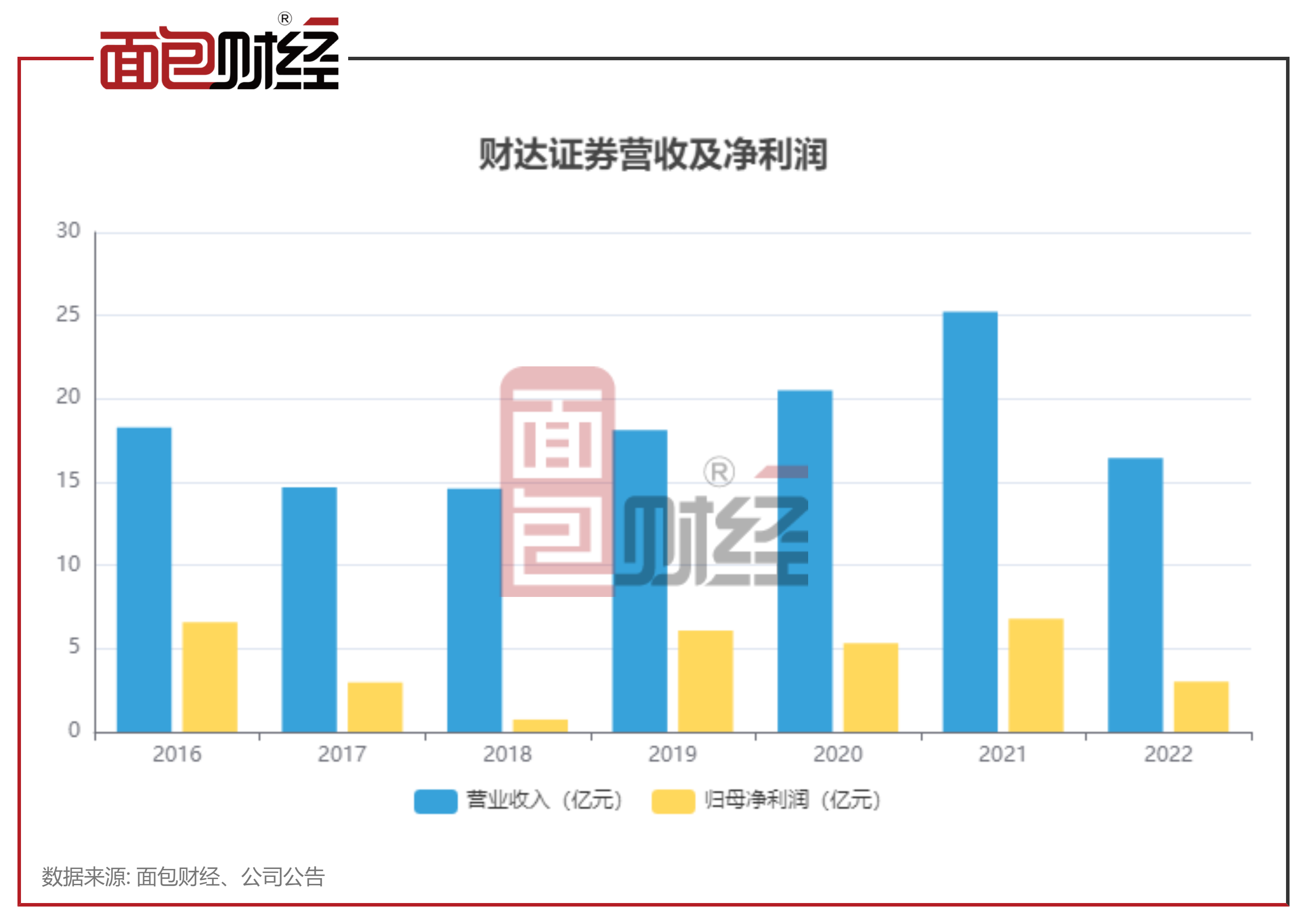 年报显示,2022年财达证券实现营业收入16.44亿元,同比下降34.89%;实现归母净利润3.02亿元,同比下降55.55%。