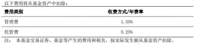 年管理费率为1.50%、年托管费率为0.25%,这两项费用按实际发生额从基金资产中扣除。