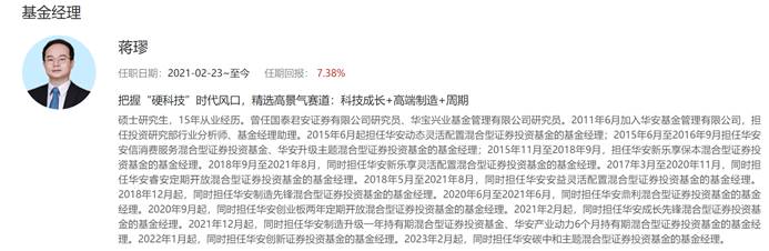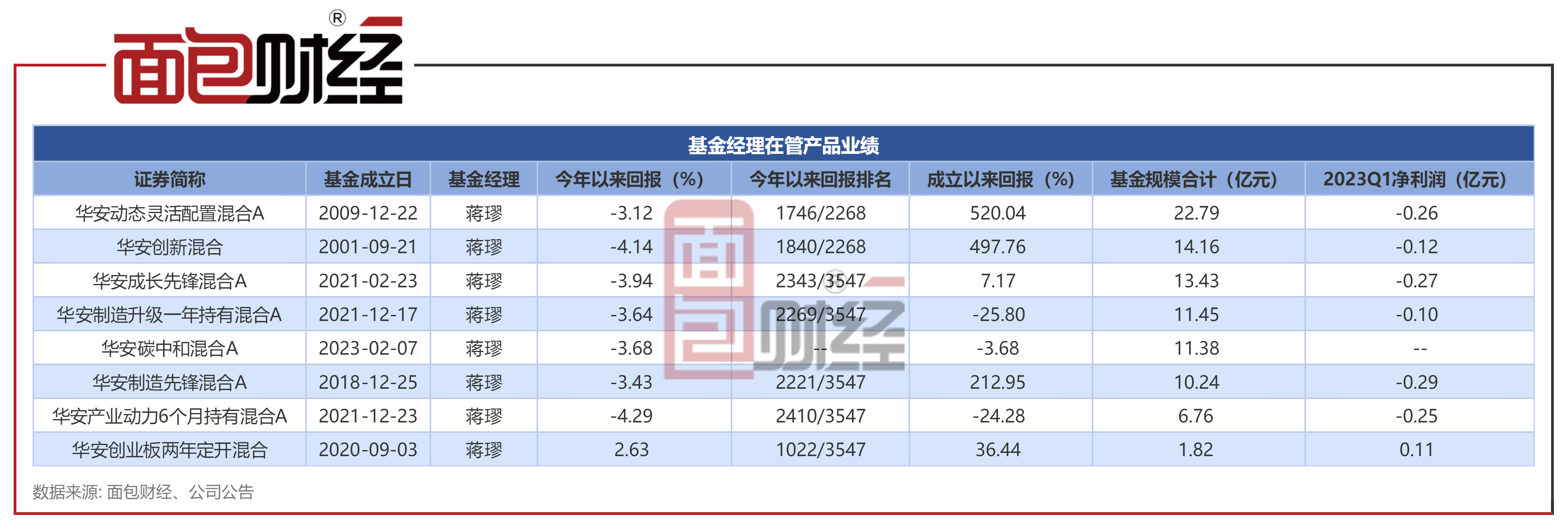 截至目前,蒋璆主要管理华安动态灵活配置混合A、华安创新混合、华安成长先锋混合A等8只(初始基金口径)产品,规模合计约92亿元。