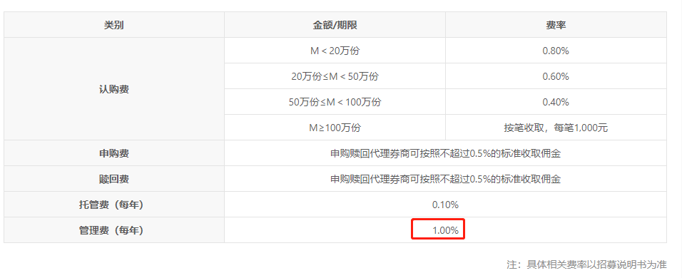 收费较高:管理费率1%,处于同类产品最高一档