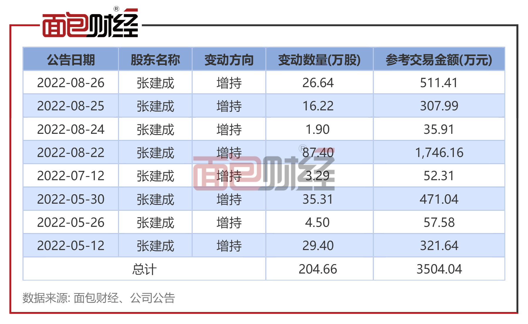 根据信披数据统计,实控人2022年累计增持204.66万股,参考交易金额为3504.04万元。