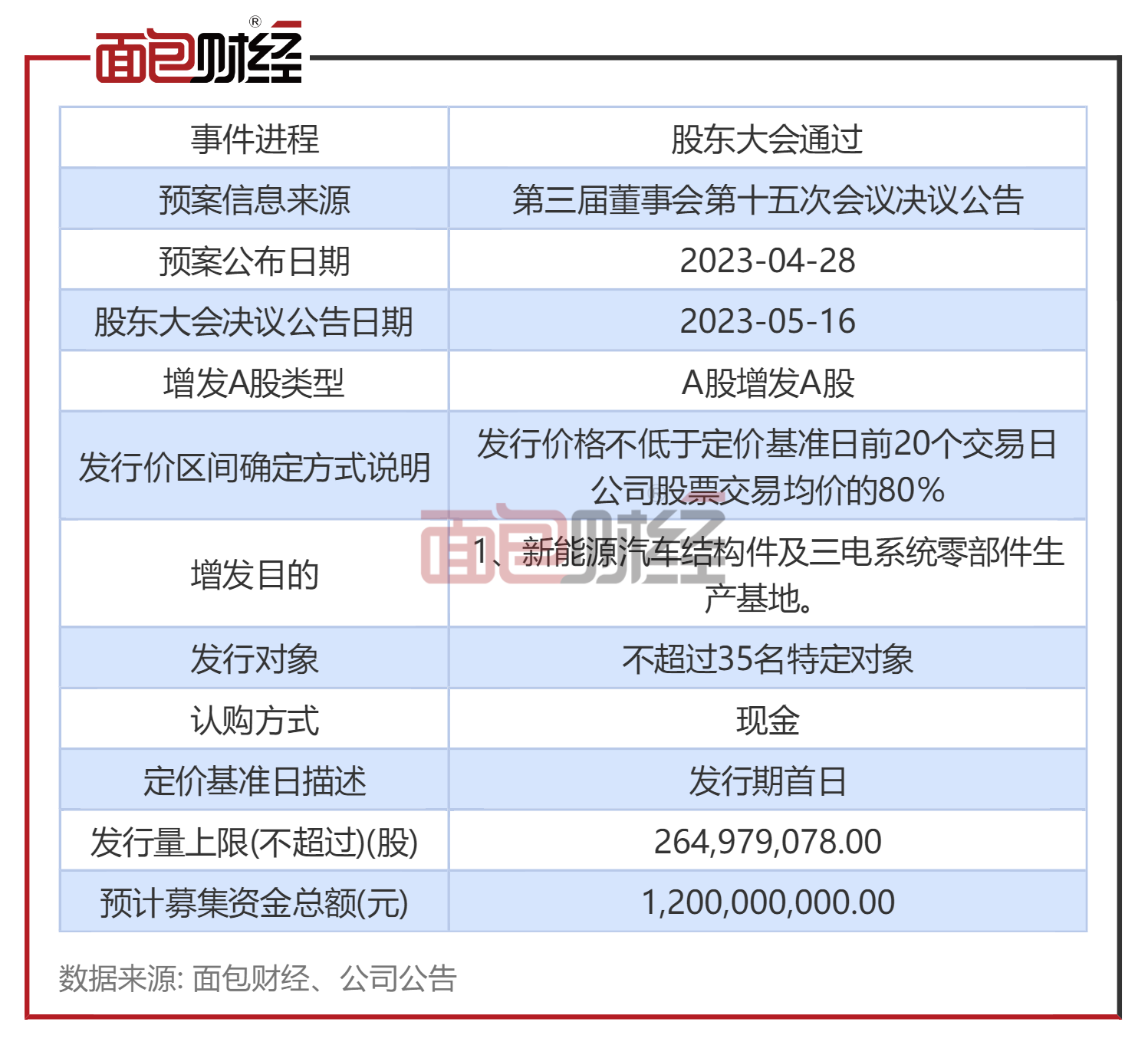 2023年5月16日,爱柯迪发布公告称,2023年向特定对象发行A股股票预案获股东大会通过,公司拟通过定增募资不超12亿元投建海外新能源汽车零件项目。