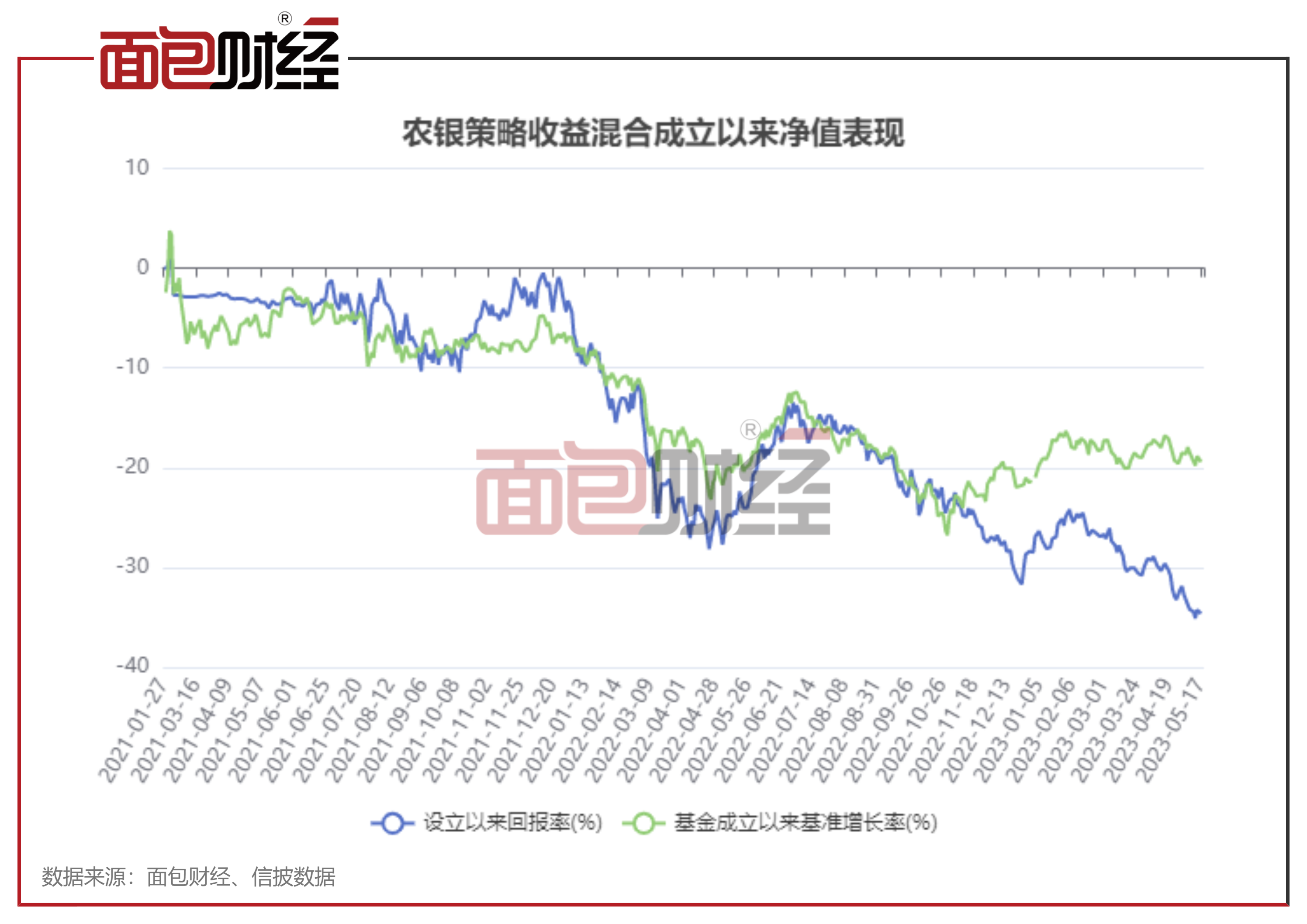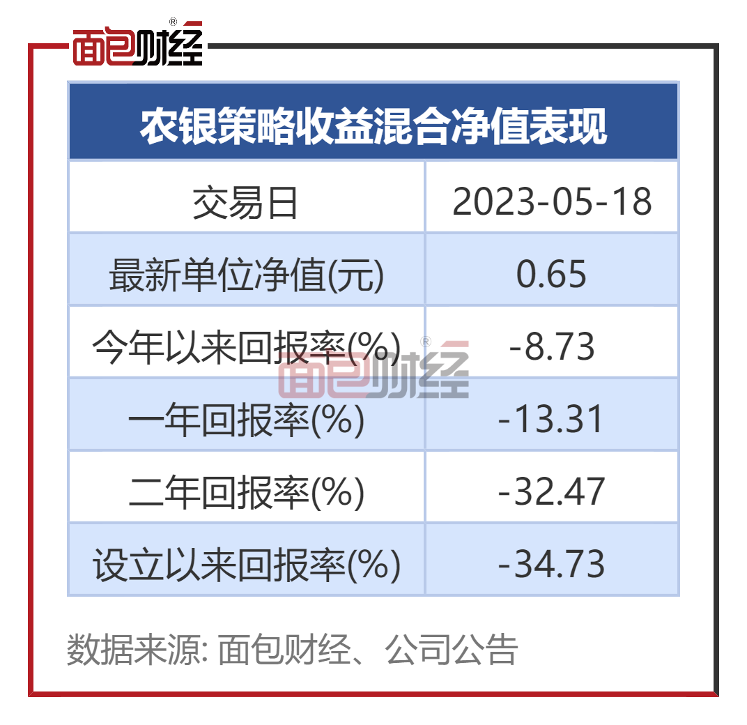 数据显示,截至2023年5月18日(下同),农银策略收益混合成立以来累计回撤34.73%,跑输业绩比较基准超过15个百分点,同类排名1188/1596。