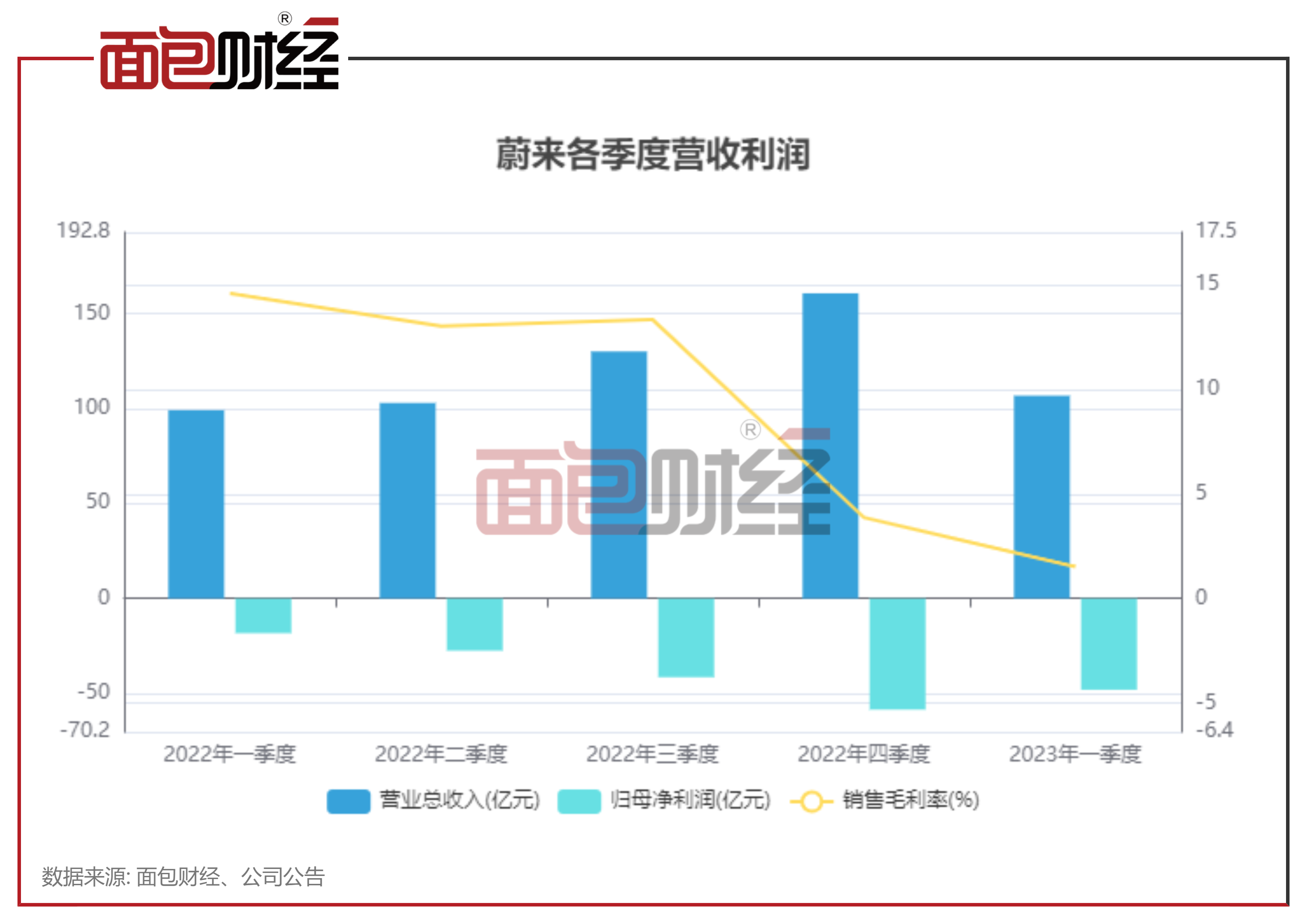 毛利率下滑、增加研发投入,导致蔚来今年一季度继续录得净亏损,当期归母净利润约-48.03亿元。