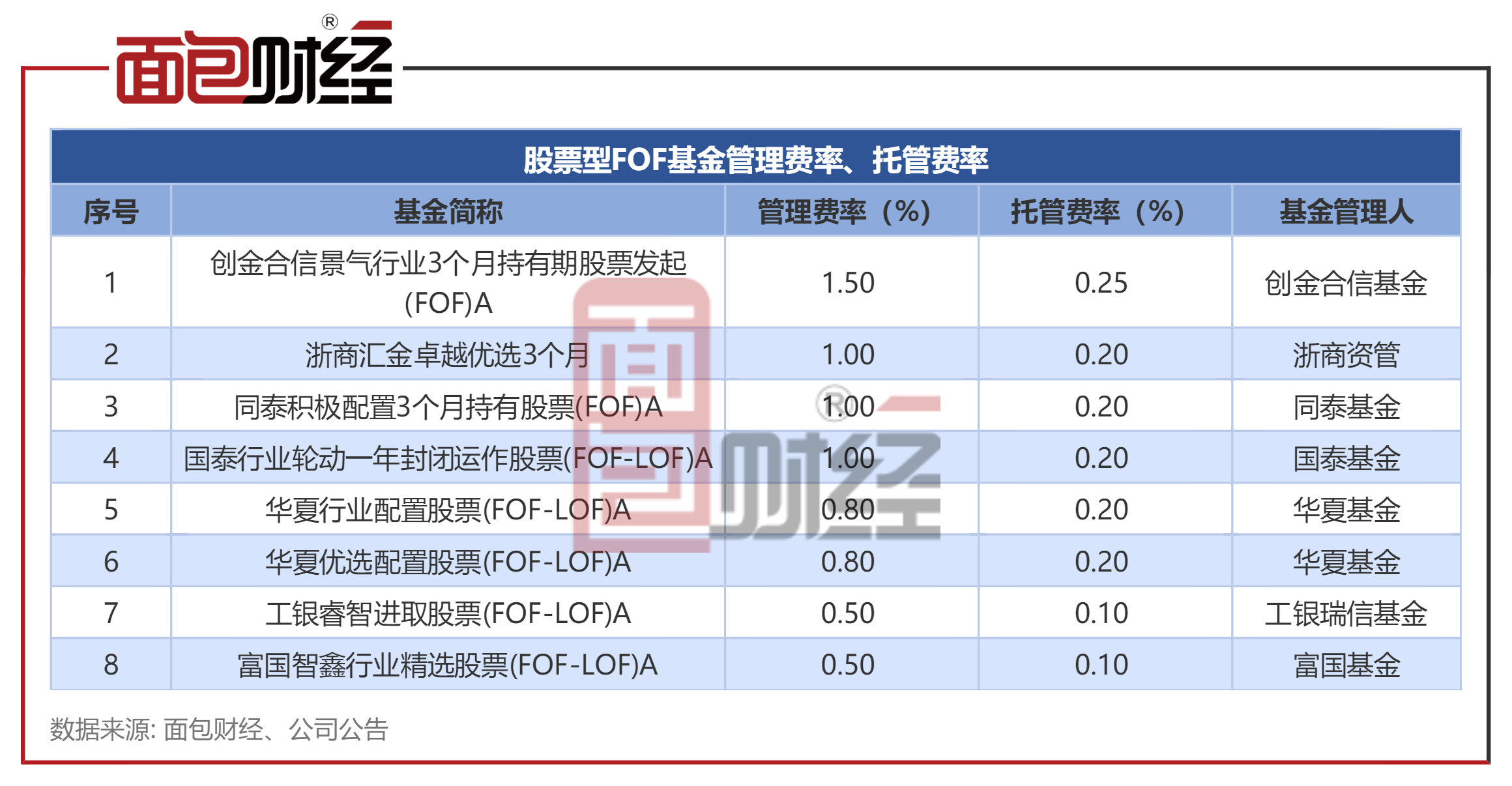 财报数据显示,上述8只股票型FOF基金的收费费率存在较大差异。