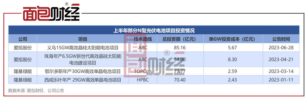 自研N型ABC电池单位投资成本较高