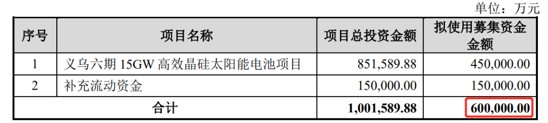 本次募投项目“义乌六期15GW高效晶硅太阳能电池项目”是公司N型ABC电池领域的扩产。