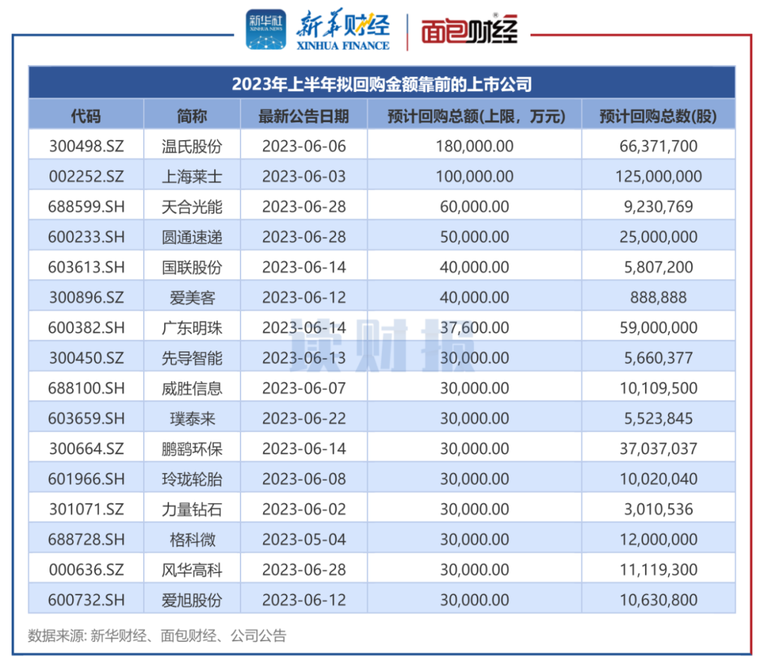 此外,剔除股权激励注销和盈利补偿,上半年A股市场共发布或通过81起未实施回购预案。按照回购价格上限计算,拟回购金额合计达141.41亿元。其中,温氏股份、上海莱士等企业拟回购金额相对靠前。