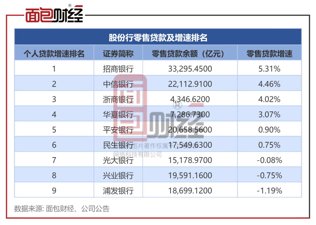 数据显示,截至6月末,该行零售贷款1.87万亿元,较上年末减少224亿元,降幅为1.19%。降幅位居股份行首位。