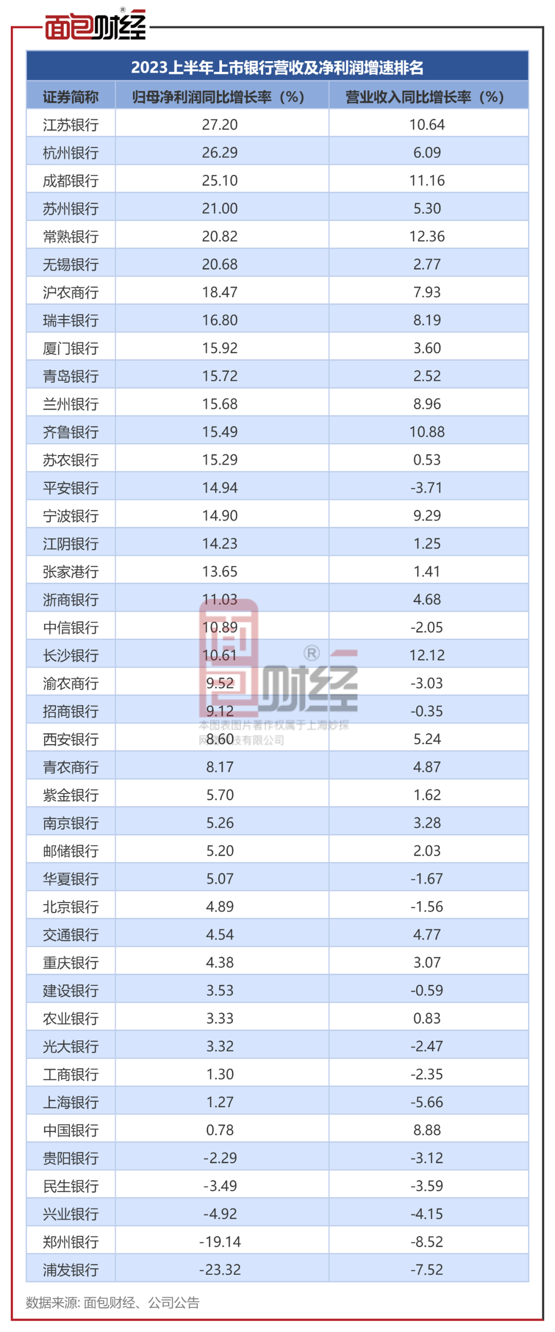 2023年上半年,该行的归母净利润降幅在A股上市银行中最大;营收增速在上市银行中倒数第二。