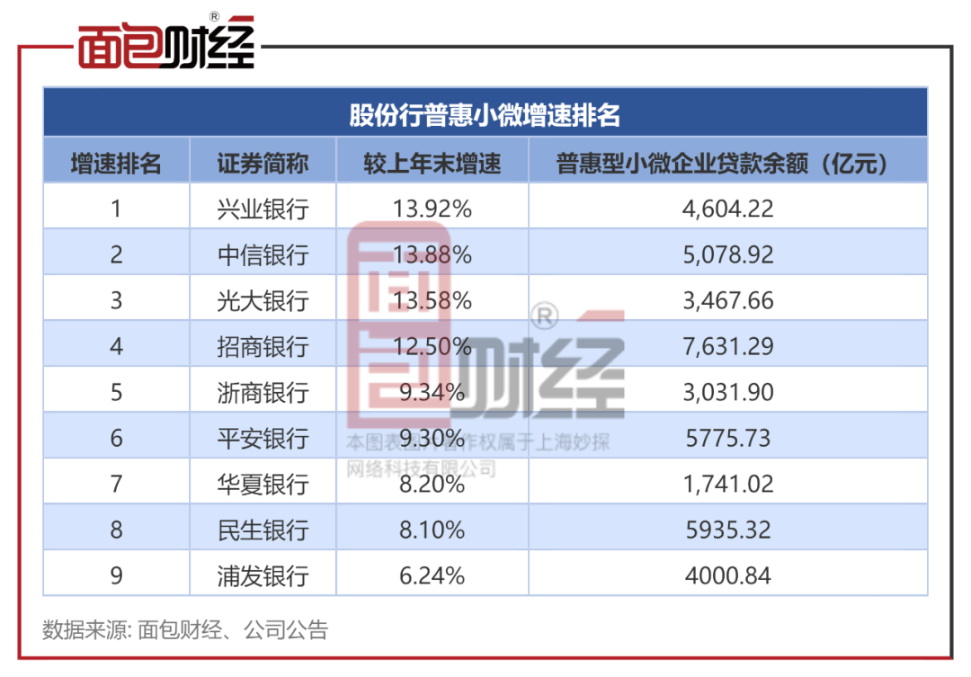 值得关注的是,截至2023年6月末, 浦发银行的普惠型小微企业贷款增速垫底股份行。数据显示,截至6月末,浦发银行的普惠型小微企业贷款余额为4000.84亿元,较上年末的增幅为6.24%,在股份行中最低。