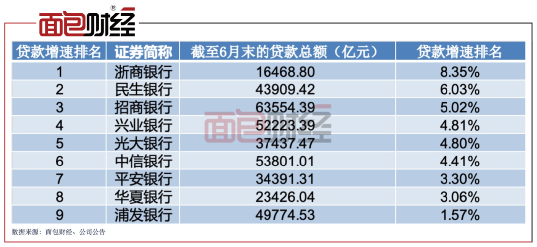 贷款总额方面,截至6月末,浦发银行贷款增速在股份行中同样垫底。数据显示,截至6月末,浦发银行的贷款总额为4.97万亿元,增幅为1.57%。