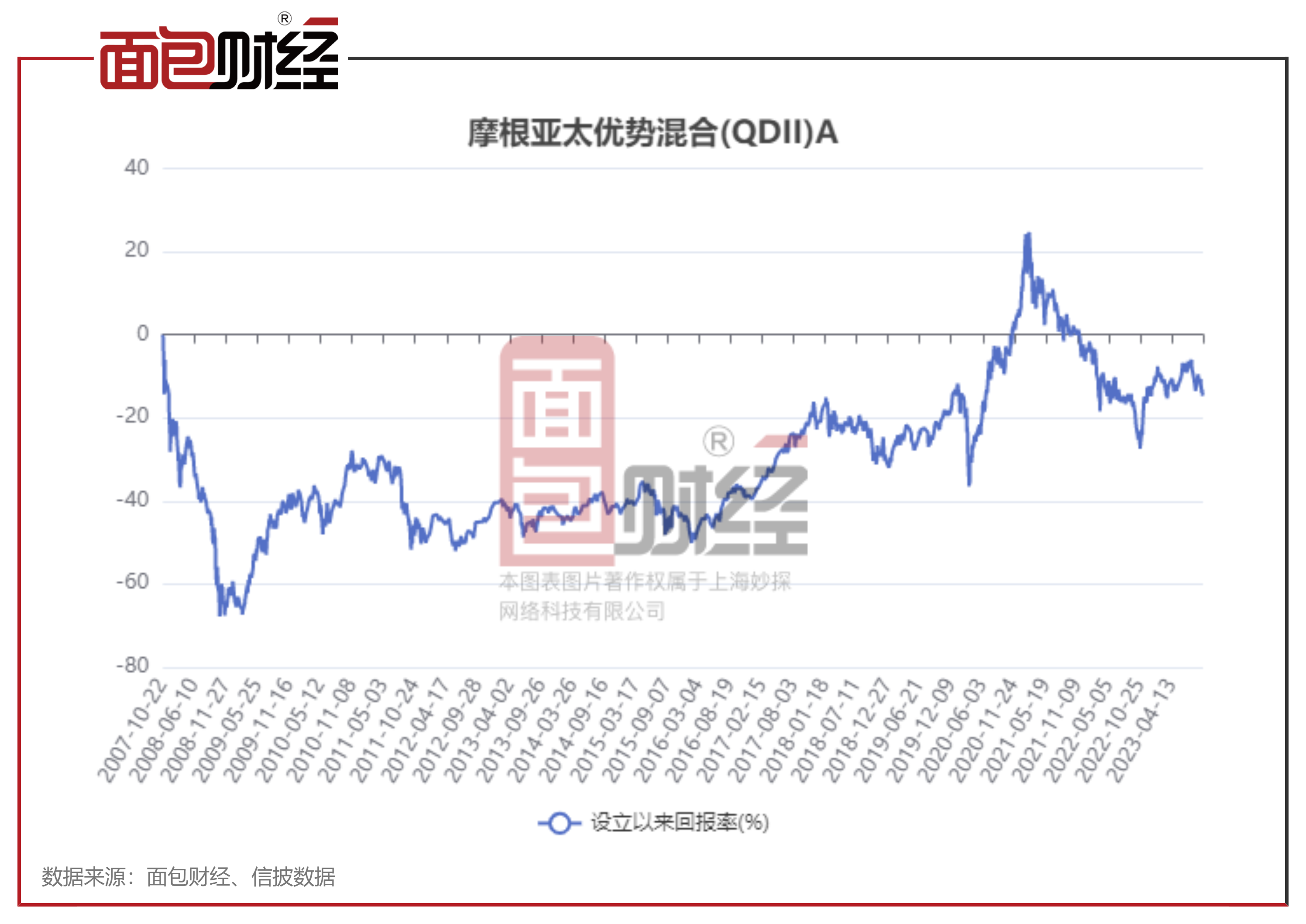 然而,成立16年以来,摩根亚太优势混合(QDII)A仍累计亏损14.59%。