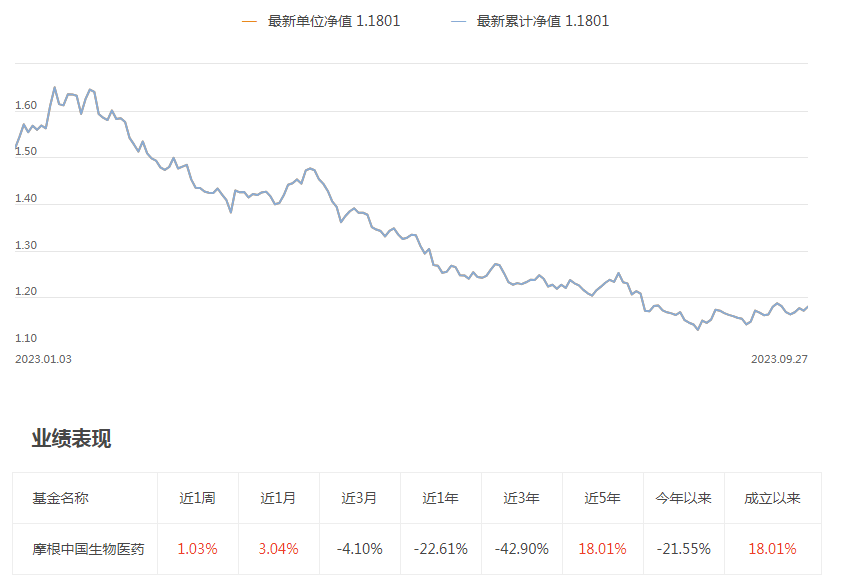 摩根中国生物医药混合(QDII)A:年内亏损21.55%