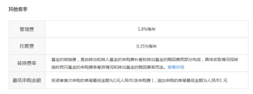 不过,尽管长期业绩表现欠佳,该基金仍然收取行业较高的费率,每年的管理费、托管费分别达到1.8%和0.35%。