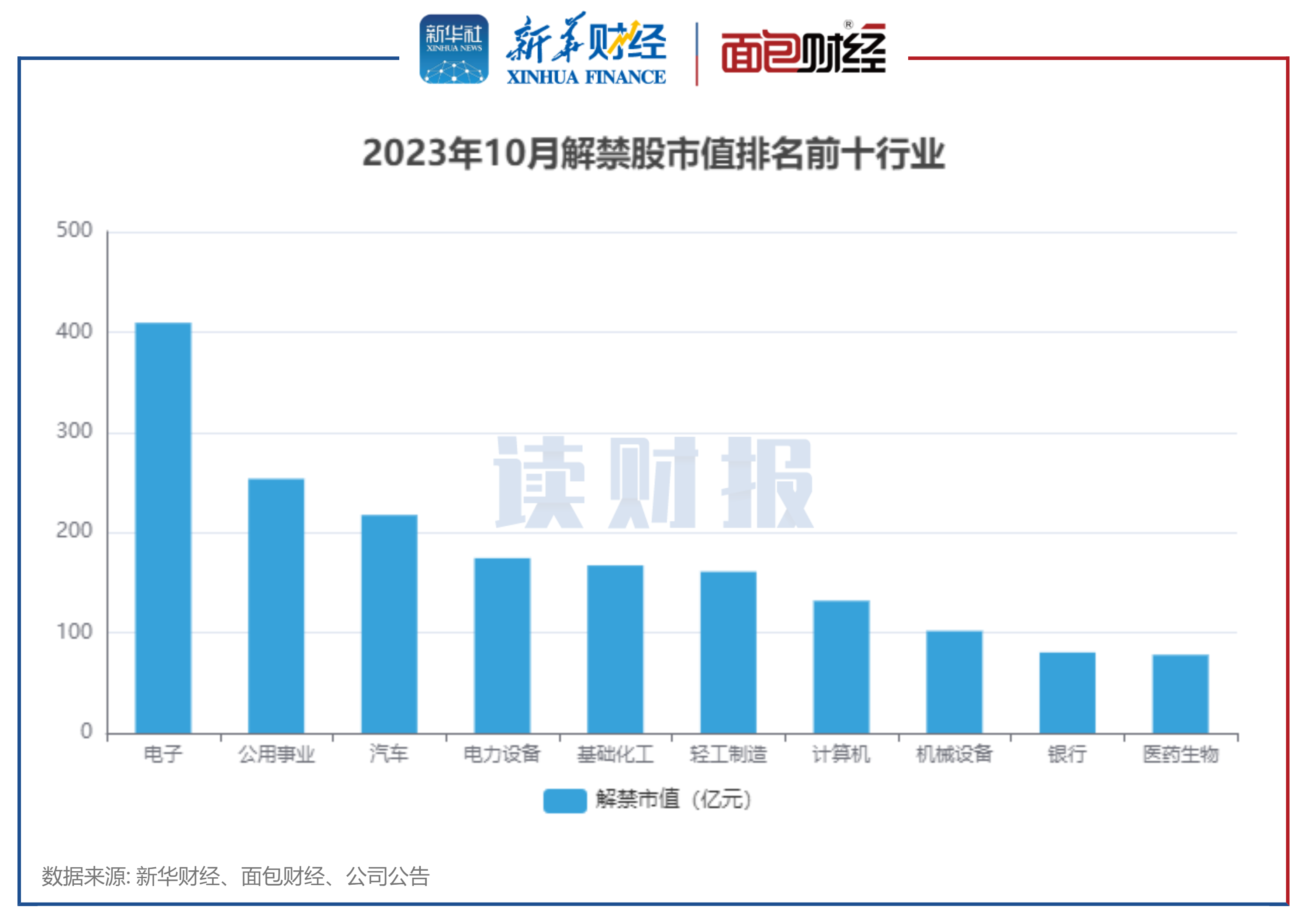 电子、公用事业、汽车行业解禁市值居前