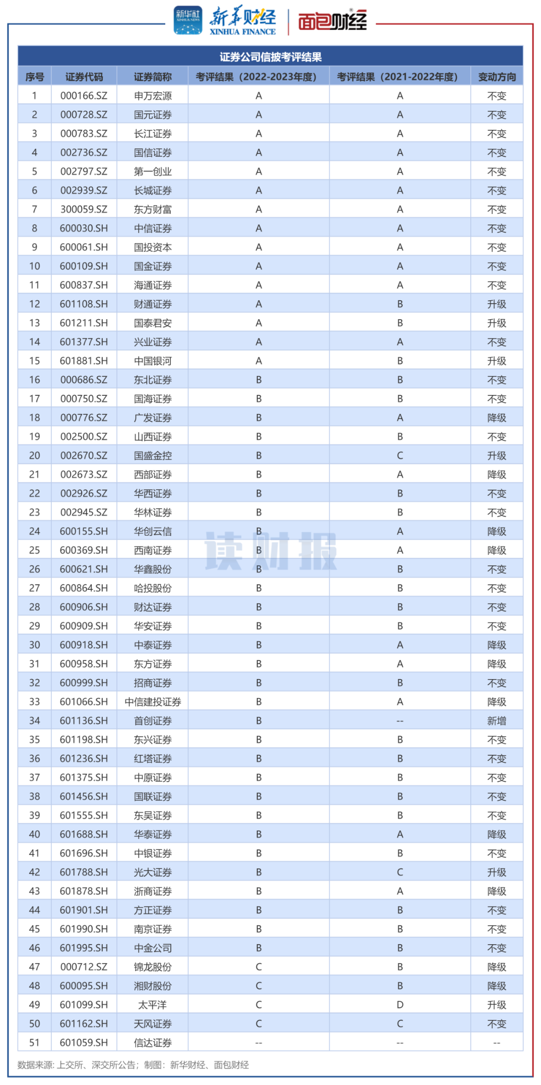 新华财经和面包财经研究员对沪深交易所披露的上市公司2022至2023年度信息披露工作评价结果进行了整理,本篇为上市券商篇。